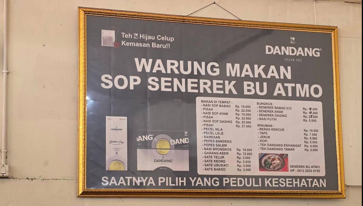 Warung Kuliner Bu Atmo yang terletak di Kuliner Jendralan. WWarung makan senerek “Bu Atmo” yang telah ada sejak tahun 1967 silam, sudah lebih dari 50 tahun warung makan ini tegak berdiri memenuhi perut lapar konsumen yang sedang menginginkan sop senerek, karena itulah saat ada yang mencari sop senerek di Magelang, tempat ini selalu menjadi pilihan nomor satu untuk berlabuh dan sudah sangat kondang di telinga wisatawan atau pelancong yang sering berwisata di Magelang.