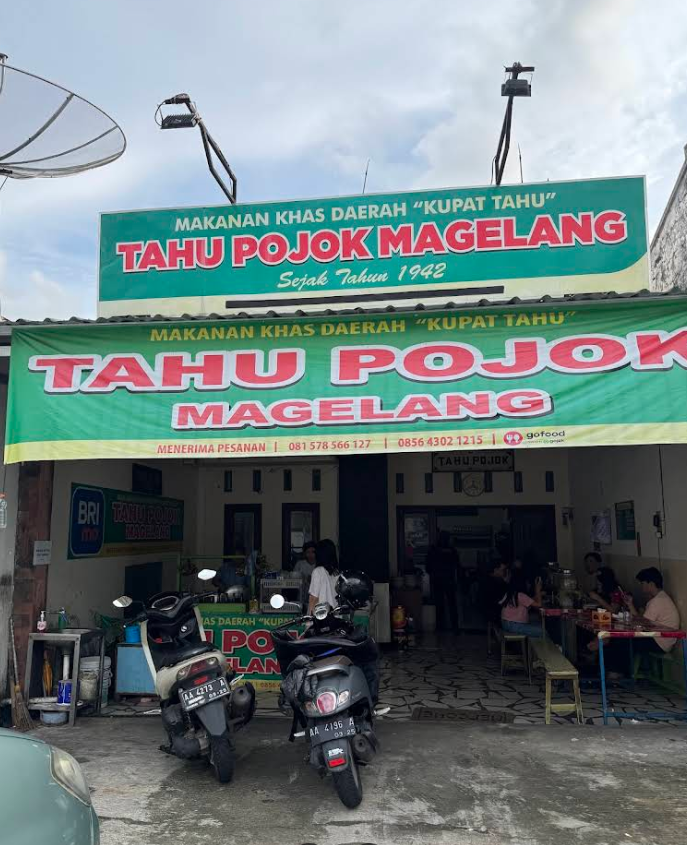 Salah satu makanan khas Kota Magelang adalah kupat tahu. Makanan dengan bahan-bahan yang sederhana ini sudah menjadi ikon kota ini. Di setiap sudutnya dari mulai pusat kota hingga pinggiran akan sangat mudah kita temukan warung makan yang menjajakan kupat tahu. Salah satu warung kupat tahu yang legendaris di Magelang adalah Kupat Tahu Pojok, yang sudah ada sejak tahun 1942.